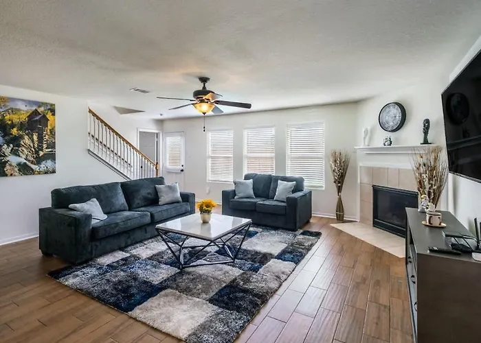 Breakfast With A View With Bbq Firepit Golf Course Villa is situated 3.1 km from Church of Jesus Christ of Latter-day Saints in Conroe and offers accommodation with a fully equipped kitchen. This venue comes with 3 bathrooms, as well as a balcony, a work desk, and coffee and tea makers in the rooms.